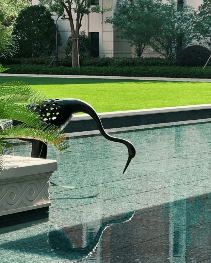 整个居住氛围在别具一格的水景和铜质景观小品的修饰下,更显得精致、高级感满满。
