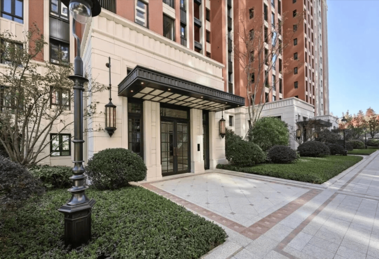 项目外立面底部、景墙等采用葡萄牙米黄石材,主体采用爱和陶红砖,用更当代的材质、工艺、美学,打造出经典的海派风格。