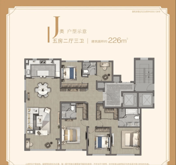 【建面226㎡5居】1900-2100万,5室2厅3卫, 南朝向,楼栋分布于6号楼/8号楼/11号楼