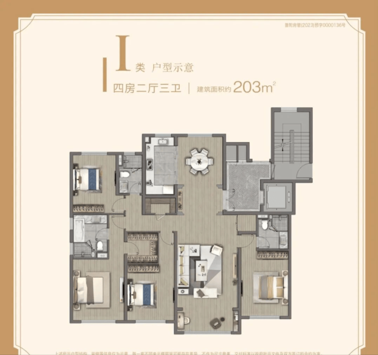 【建面203㎡4居】1700-1900万,4室2厅3卫, 南朝向,楼栋分布于10号楼