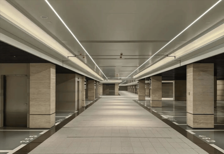 宝华的精装车库一直被模仿,从未被超越,地下车库采用石材车道、镜面环氧停车位,空间宽敞、明亮通透。