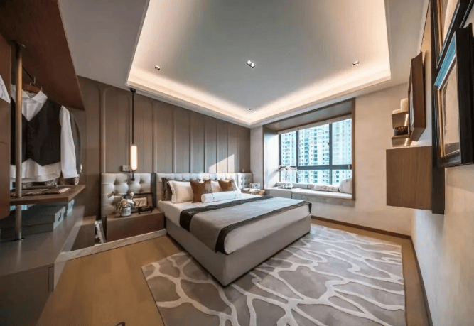 交付标准:精装交付,配备大金中央空调、地暖、嵌入式冰箱、洗碗机等一线品牌,实现“拎包入住”