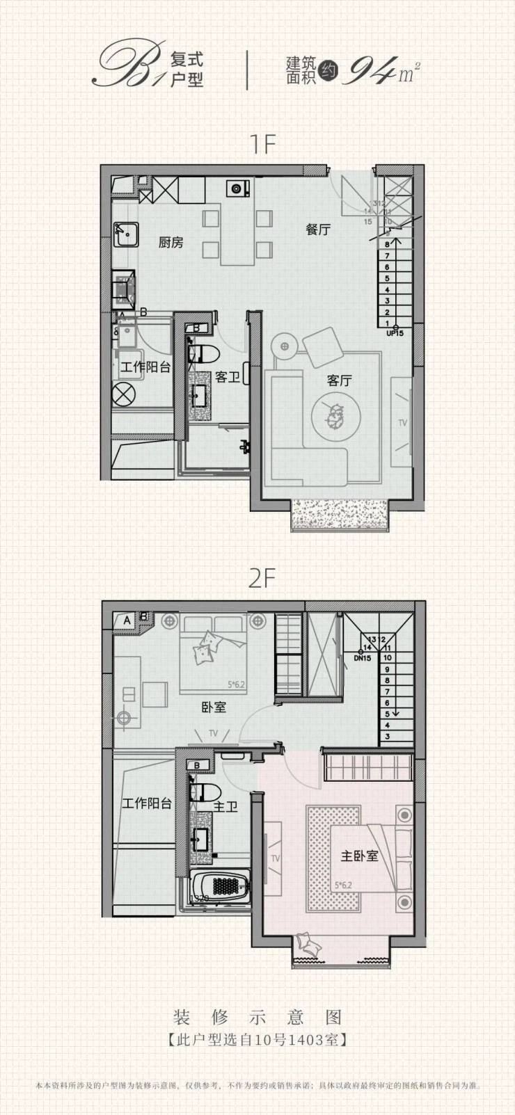 94㎡复式二房:总价约1120万–1150万,上下两层设计,空间利用率高,适合年轻改善家庭