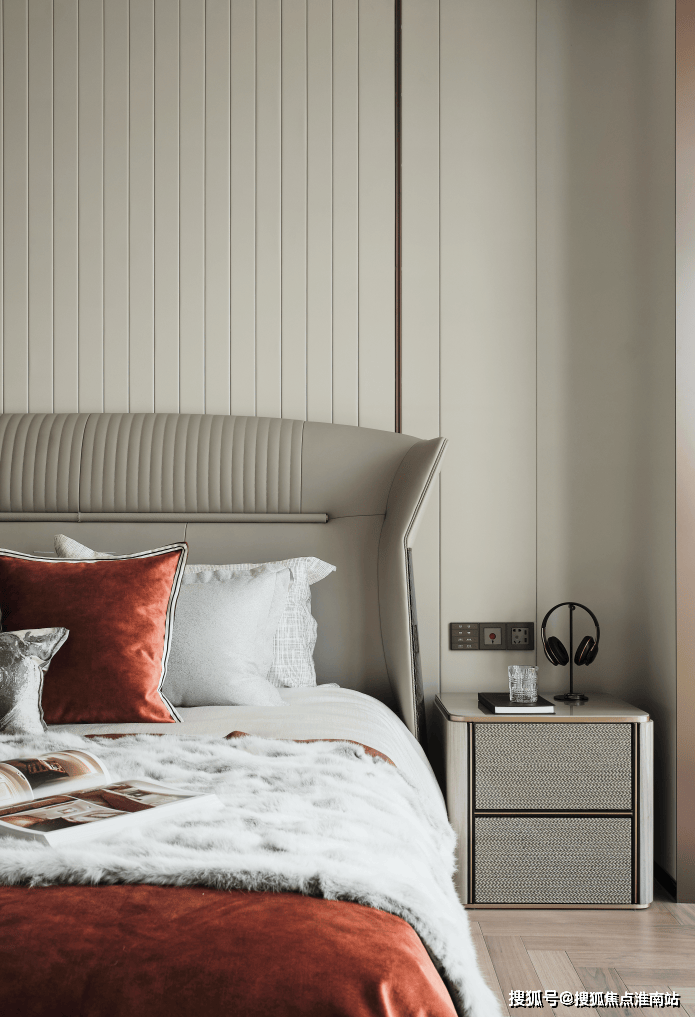 作为与房间主人最紧密链接的空间,主卧设计对于展现其品位、格调、审美等多样精致需求的标准更为具象。真皮包裹的墙面让房间内部的光线变得沉稳而内敛。便是其拥有的全套房设计,并且都带有独立的生活空间,包括主卫及个人衣帽间。保证了家庭成员适合的交流尺度,进可以全家交流,退可以互不干扰。