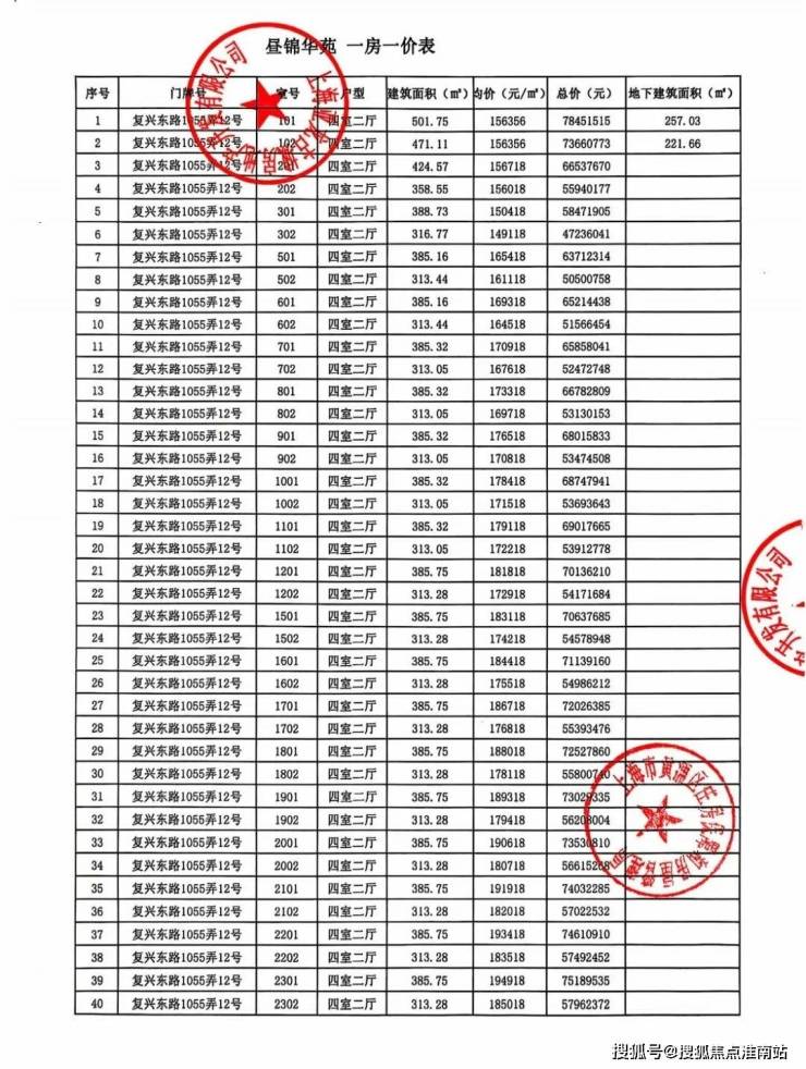 上期一房一价表如下: