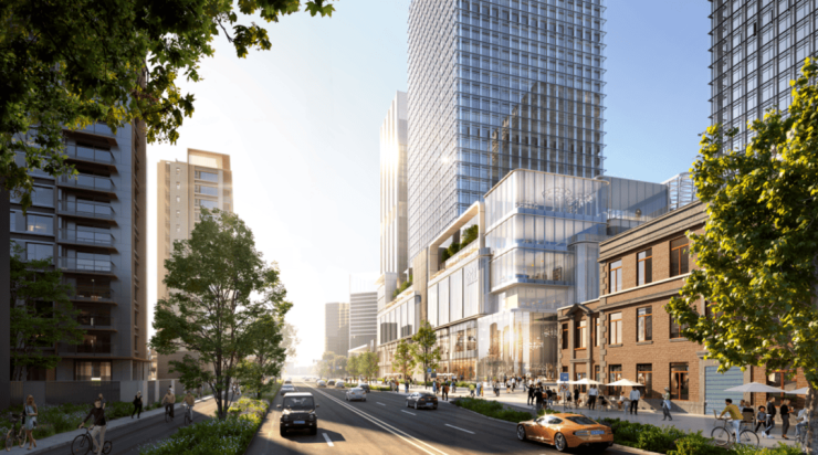 放在这样一个正在持续完成总部集聚、商业焕新的区域里,这种更具有现代感、未来感和城市界面感的建筑表达,无疑更容易与板块未来的整体面貌形成同频。