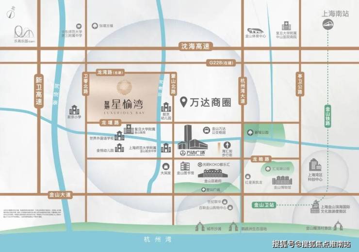 乘临近轨交22号线金山卫站(距离项目4.8公里左右),22号线直达车约35分钟抵达上海南站,站站停约55分钟抵达上海南站。