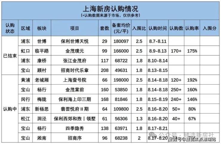 截至发稿前,8月的上海新房市场只有4个项目开盘,其中位于浦东的保利世博天悦,以及闵行的古北悦公馆并未摇号。