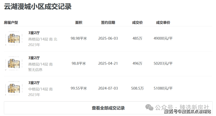 南翔的云湖漫城,2023年交付的次新房,最新成交均价4.9万,跌破了开盘价。