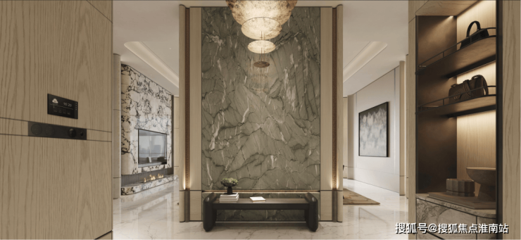 汇宇汇而泰售楼处电话☎:400-998-9694 玄关处,在近5米的进口石材墙面上,不管是挂上收藏的名画,还是摆放淘来的艺术品,灯光一洗,立刻有了「私人博物馆」的范儿;