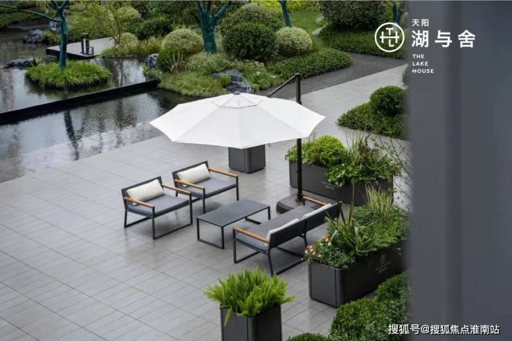 正是因为得天独厚的水系自然资源,所以在湖与舍的内部景观设计方面,通过在社区人行入口、中轴景观处、核心节点区域,都设计了多重水景。设计师更通过多种植物与树种的运用,打造出丰沛的园林体验。这种内与外的呼应,就像是把一片“微缩的东沙湖”搬进了小区里。