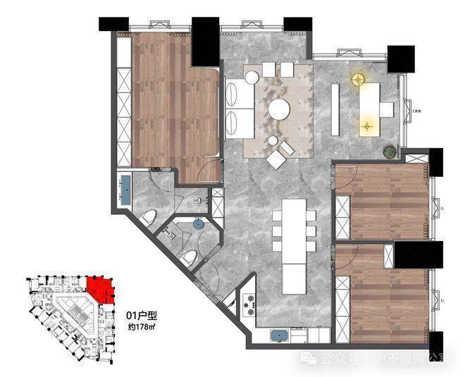 177㎡,东北朝向,4房(3+1)全能户型,边套+超大阳台+极致采光