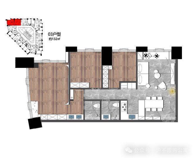 132㎡,西北、东南朝向,3房性价比之王,边套设计户型方正主卧双面大落地270度全景采光