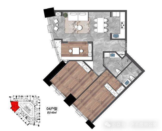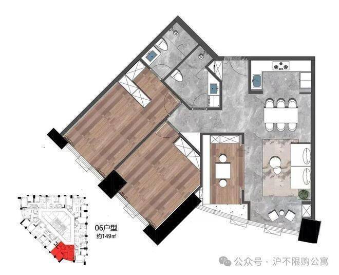 149㎡,西南朝向,3房(2+1)灵动布局,功能多变