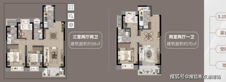 项目目前在售建面约72-88㎡2-3房,总价门槛较低。