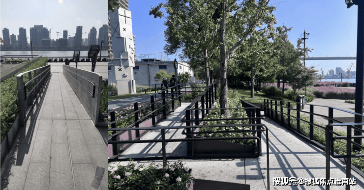 还有一点“小事”,更体现杨浦滨江的人性化和友好性—— 无障碍环境建设。比如,在杨浦滨江你会看到这样的路面设计,这是为了让轮椅出行的人群更通畅。