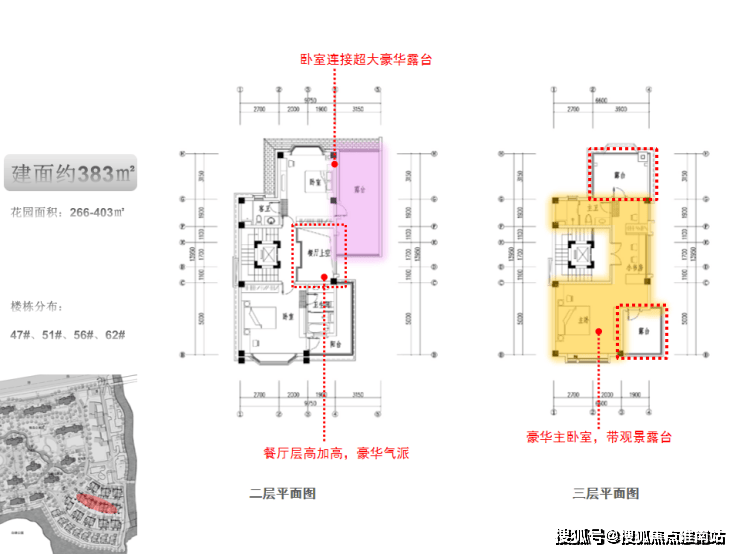 建面约383㎡双拼别墅,花园面积266-403㎡