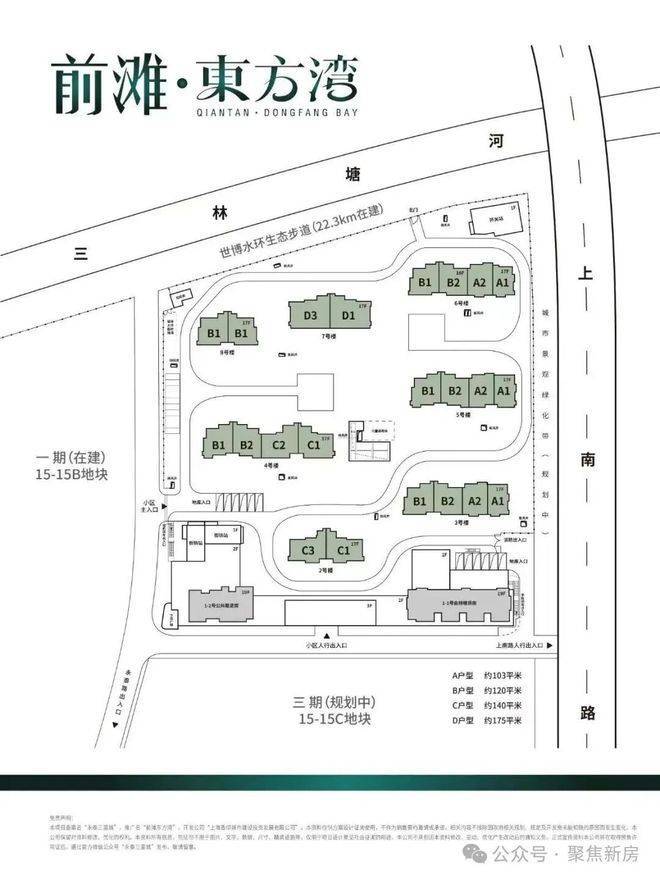 据悉:1站前滩,浦东三林永泰三里城二期【前滩·东方湾】将推建面约103-175㎡3-4房,户型图发布,样板间已开放,即将入市!