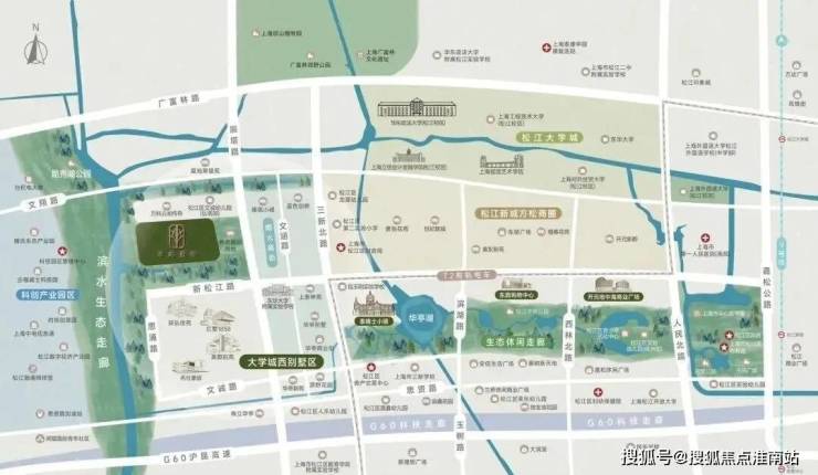 萃屿原墅所在的松江新城高端别墅区北接松江大学城,南临G60科创走廊,东靠政务金融中心,西邻油墩河谷规划,兼具成熟配套与产业动能: