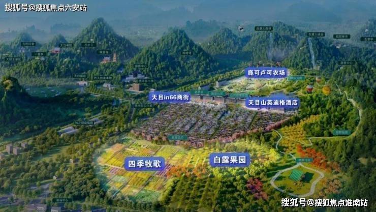 项目融合了居住、度假、亲子、娱乐、运动、康养六大生活场景,规划了唐风合院、英迪格酒店、天目in66商业街、自然探索乐园、耕心农场、自在果园、暖驿社区等丰富配套,旨在打造一个集居住、休闲、养生于一体的理想家园。