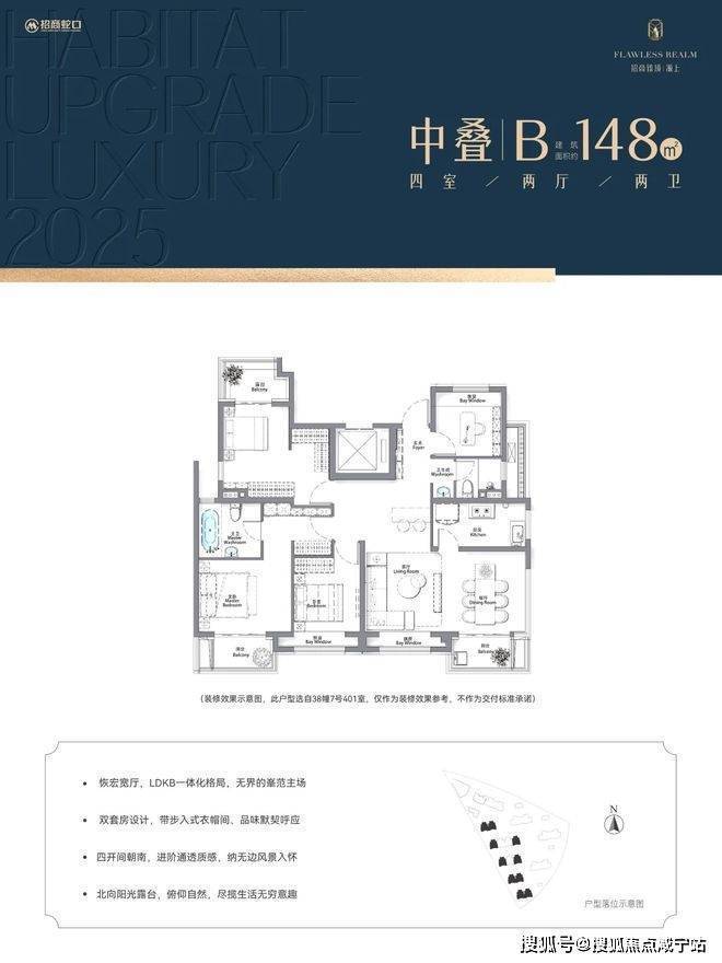 空间设计:LDKB一体化 + 三阳台 + 主卧套房 + 高得房率
