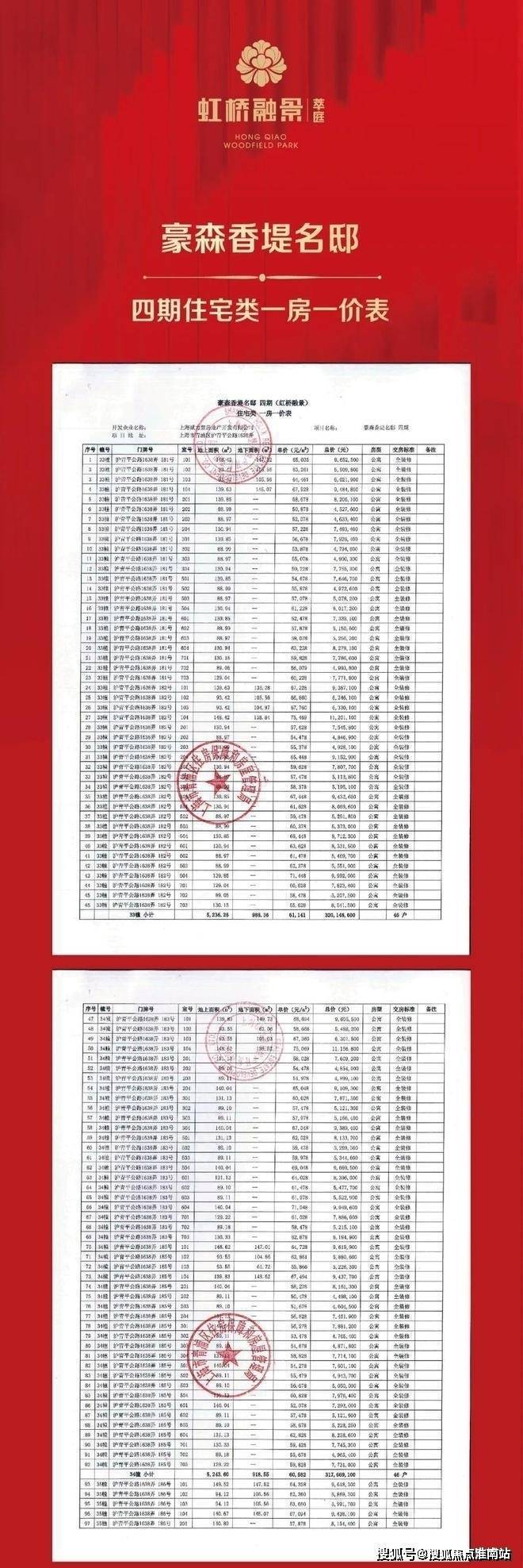 一房一价表如下虹桥融景 售楼处电话:400-8567-334 ✔✔