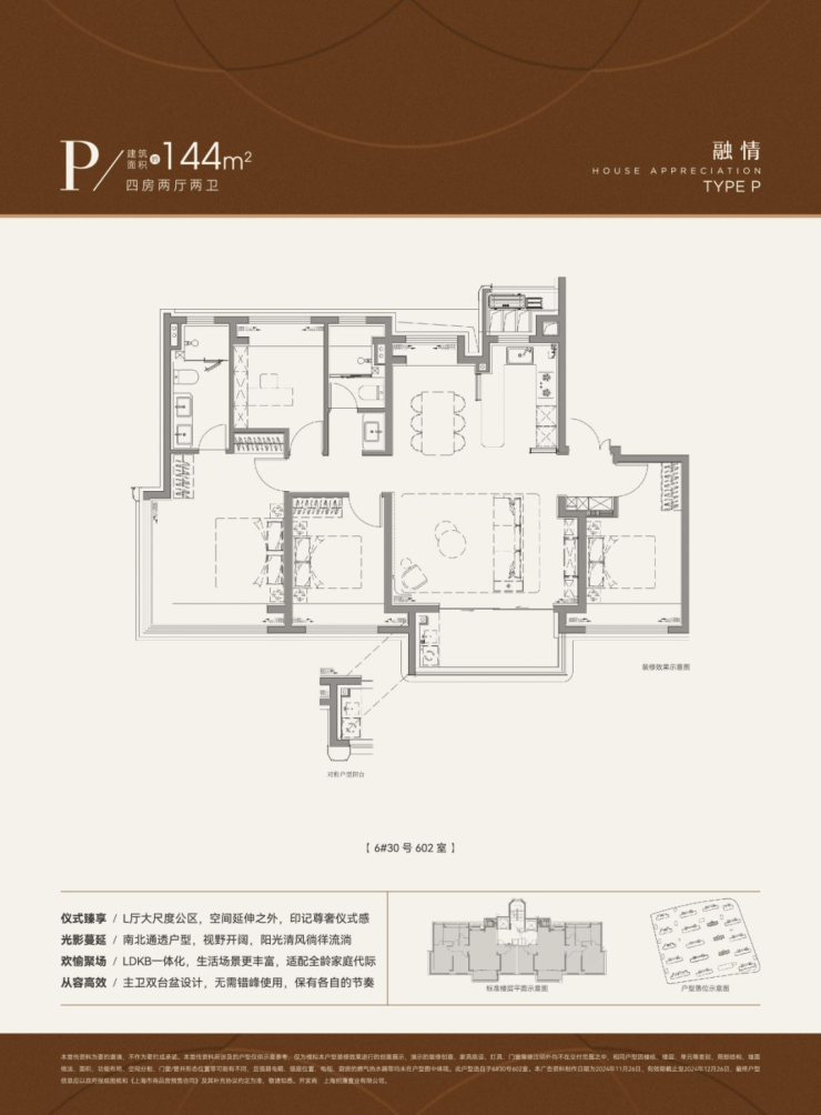 四居:建面约144㎡(改善型,南北通透)