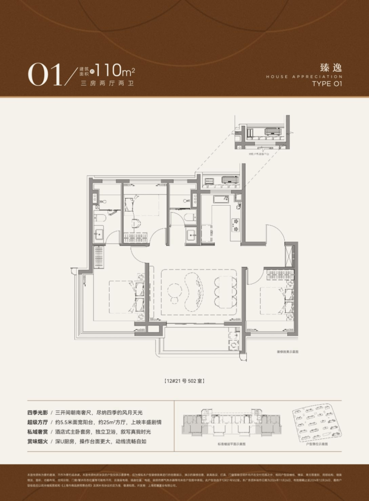 O1/O2户型:约110㎡,U型厨房+主卧套间