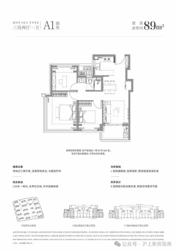 三居:建面约89–110㎡(主力户型,三开间朝南)