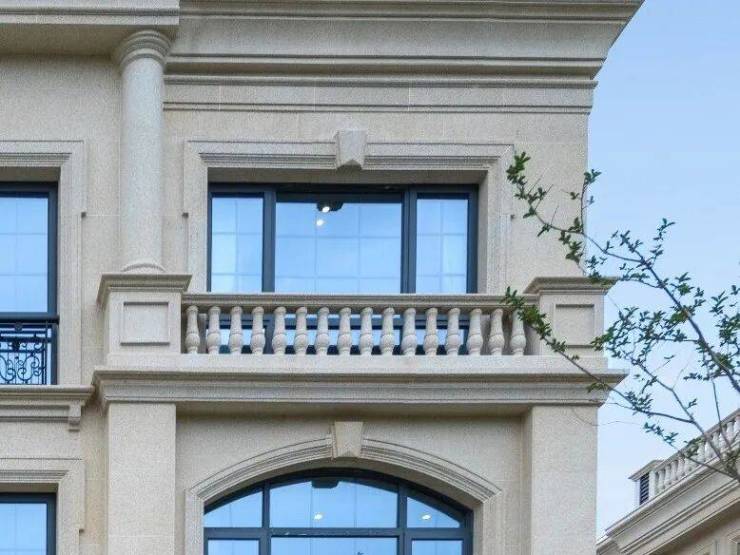 绿城法式经典 纯甄石材立面 沿承绿城经典法式联排风格,外立面石材干挂为主 私家车库直通地下室入户 ,法式大宅,代表了绿城造墅的至上修为。