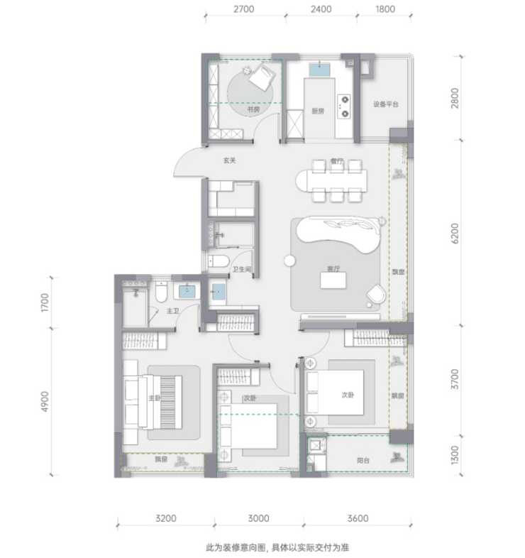 另外,这个户型把次卧也做了270度采光视野,可以说充分利用了楼幢的视野优势,也是不错的设计