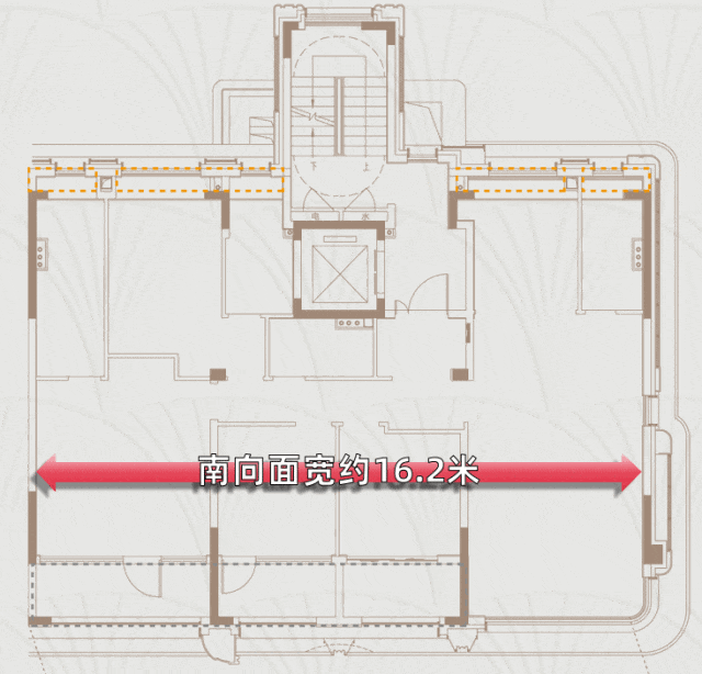 哪怕是传统的平墅户型,也可以完美解决生活痛点。约197㎡平墅的南向面宽,是约16.2米。