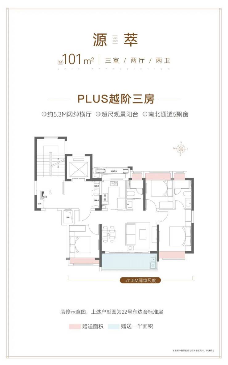 101㎡PLUS越阶三房:约5.3M阔尺横厅/约11.5M南向面宽,宽纳聚会欢愉
