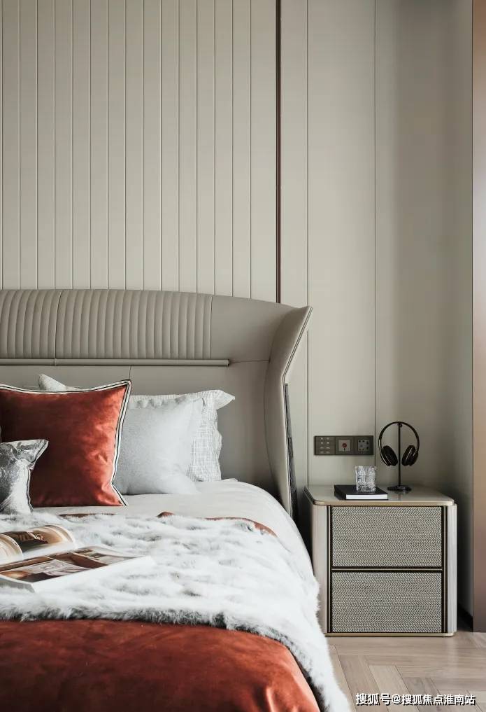 作为与房间主人最紧密链接的空间,主卧设计对于展现其品位、格调、审美等多样精致需求的标准更为具象。真皮包裹的墙面让房间内部的光线变得沉稳而内敛。便是其拥有的全套房设计,并且都带有独立的生活空间,包括主卫及个人衣帽间。保证了家庭成员适合的交流尺度,进可以全家交流,退可以互不干扰。