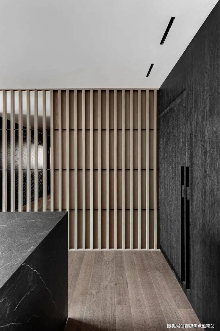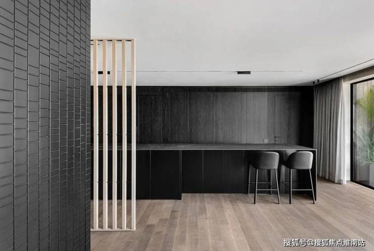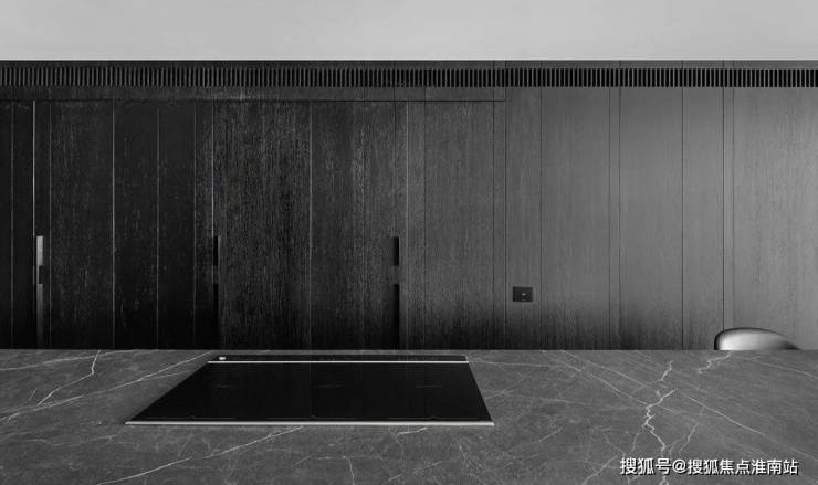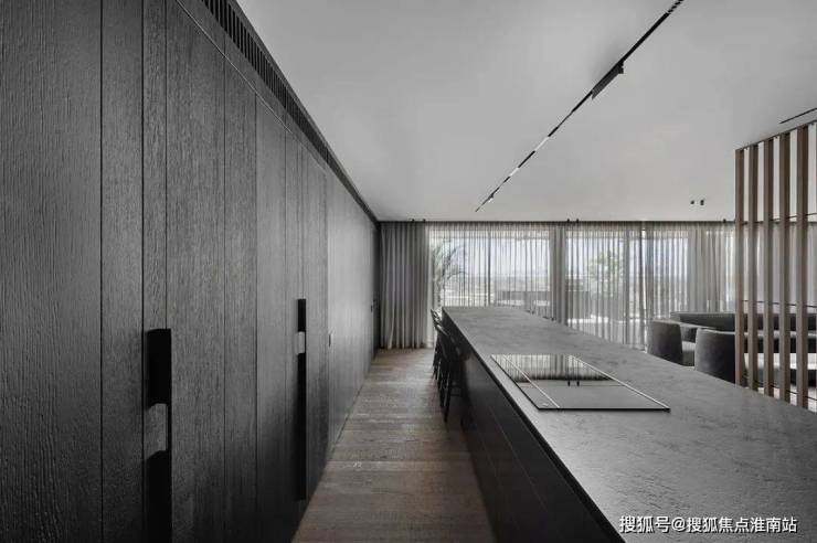 The restaurant is located next to the kitchen, cleverly incorporating natural textures and minimalist shapes, creating a simple and exquisite dining environment. The central island platform is closely connected to the dining table, and the delicate texture on the black marble adds a restrained and atmospheric atmosphere to the dining space. This design creates a comfortable, elegant, and modern dining environment for people, allowing them to taste delicious food while also feeling the warmth and comfort of home.
