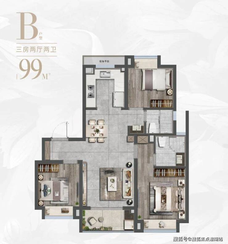 在产品设计上,项目主力户型建筑面积约88-133㎡臻质现房,可以同时满足二胎家庭、三代同堂等多元需求,更以“超悦”臻装标准,兑现业主期许。作为项目备受关注的户型,建筑面积约88㎡户型以“三开间朝南+全明格局”突破传统刚需户型设计理念,三房设计适配从单身到三代同堂的全周期需求,飘窗与观景阳台增强空间延展性,满足年轻小家庭多方面需求。