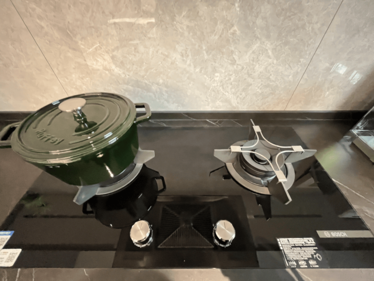 厨房 厨房灶台并不像很多项目做了“三眼灶”、“四眼灶”,其实灶眼多反而放不下中式的大炒锅;缦云上海选用的这款BOSCH博世炉灶, 液晶面板可定时, 这样煲汤的时候就无需盯着; 钢化玻璃材质, 更易清理,油渍不容易渗入。