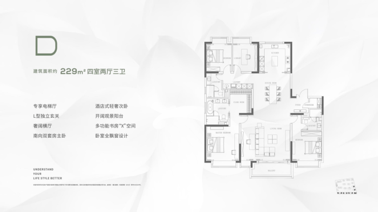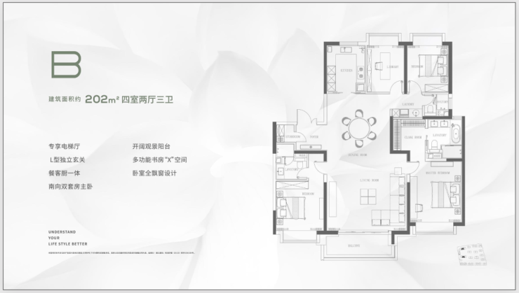 M+科技体系: 首创M+科技体系,以智慧、健康、精工、生态四大体系,赋予空间美好的体验与品质,每一寸细节皆为生活悉心定制。