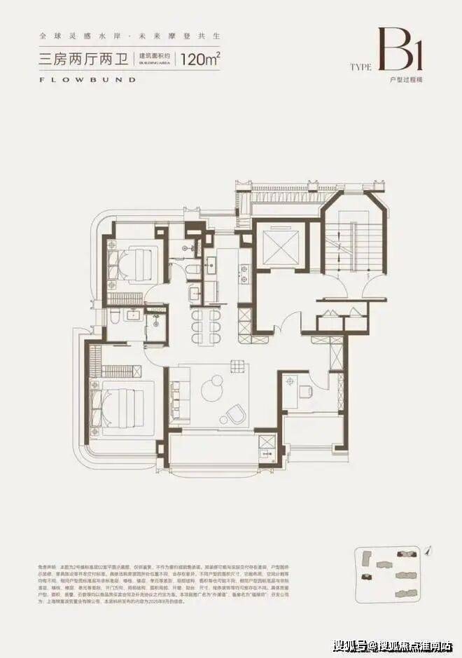 建面约120㎡的大横厅、双阳台产品,并没有勉强去做4房,而是打造了一个超宽绰的3房产品。