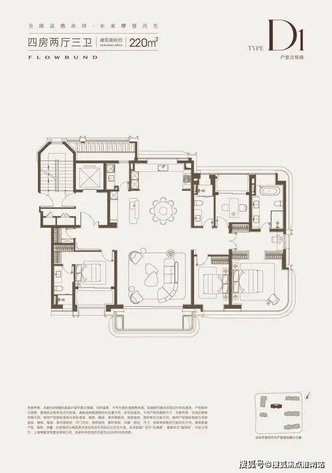 建面约220㎡产品位于整个社区的楼王位置,南北毫无遮挡,坐拥一线江景+社区中央核心景观带,视野拉满。