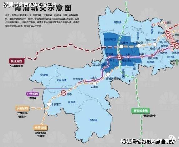 此外,1站可达青浦新城站,未来在此可同站换乘上海示范区线(在建)、嘉青松金线、轨交17号线。(信息来源:《青浦区综合交通“十四五”规划》)