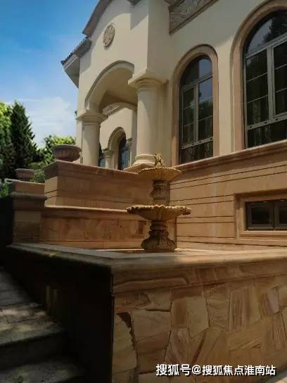 走近点,看下外立面,澳洲砂岩配以砂岩浮雕。