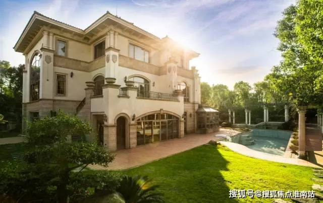 换个角度,看下房屋正面,浮雕、廊柱、穹顶、大面落地窗……浓郁的意大利风格,庄严宏伟的同时又融入了现代浪漫元素。