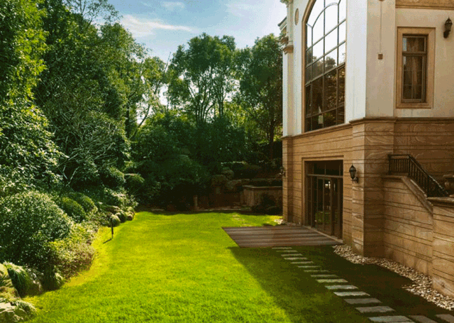 看完整栋房子后,再看下私家花园,不同户型花园面积均在1200-1700平左右,近3个篮球场的大小。要知道上海内中环的地价已达1.2亿/亩,每平米土地约18万,东郊别墅光花园,价值就至少2亿啊!