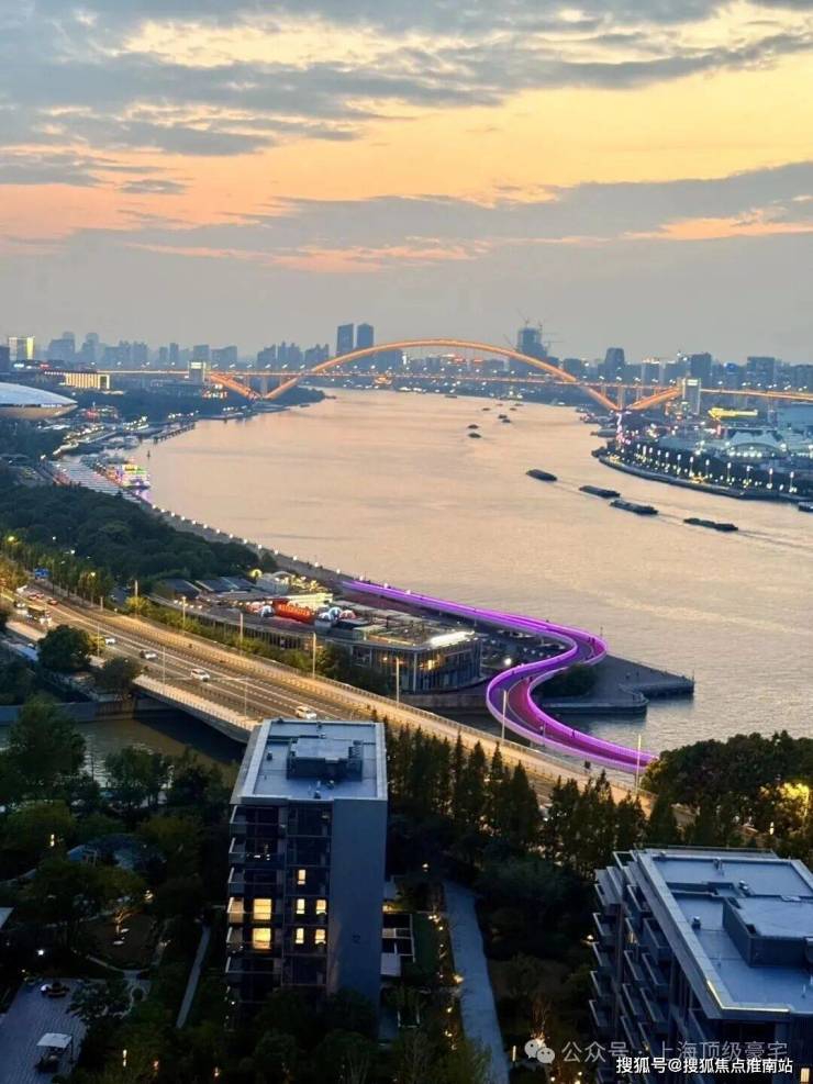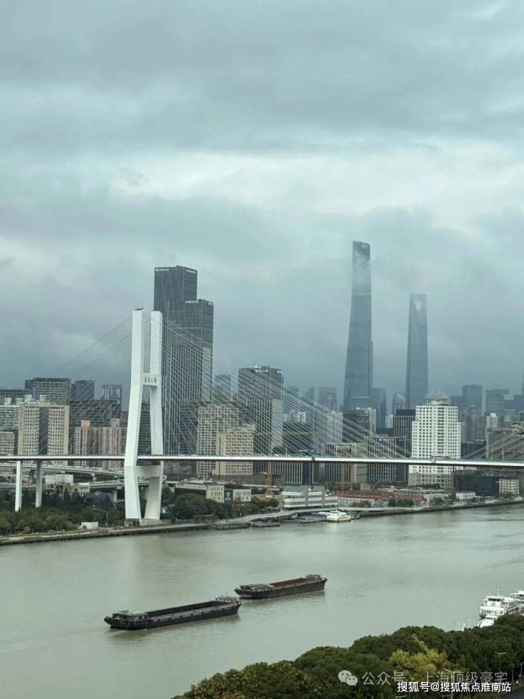 距黄浦江约80-150米,南偏东21°黄金倾角布局,270°环幕江景,部分高区可俯瞰陆家嘴三件套、南浦大桥。