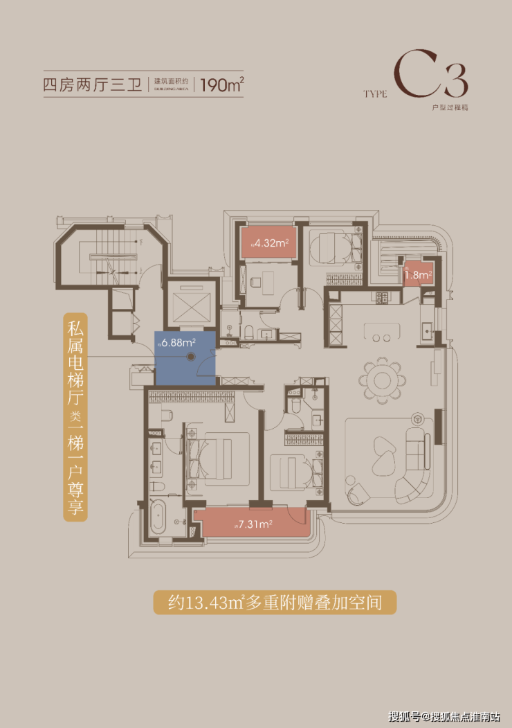 本次加推的焦点,无疑是位于社区楼王位置的 建面 约220㎡四房两厅三卫 户型 。它由知名设计公司SLD梁志天打造,以 “西意東韵·奢享鎏金” 为理念,堪称终极改善的终极答案。