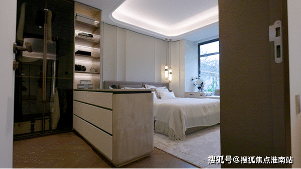 主卧系统:床头背景墙为皮革硬包+不锈钢,营造温馨与质感兼具的休憩氛围。
