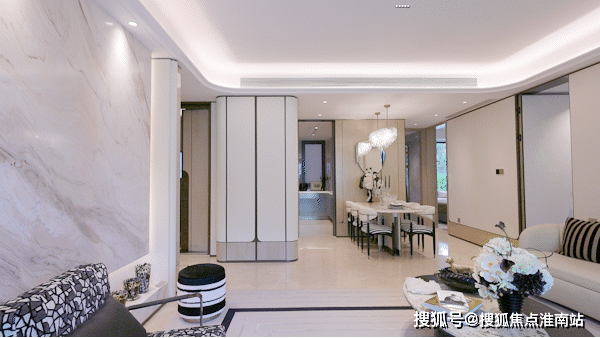 踏入室内, 约7.45米面宽 的客厅与餐厅空间,打破传统空间界限,孩子可以在客厅奔跑嬉戏,大人可以在书房处理工作,互不干扰又能随时互动。