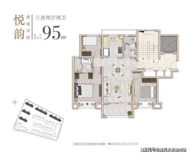 产品方面,项目以现代中式风格为基底,凝萃平坡结合手法,融入顶部挑檐及坡顶设计,全心呈现建面约117-129㎡中式叠墅、建面约85-95㎡逸境洋房洞见大匠修为。