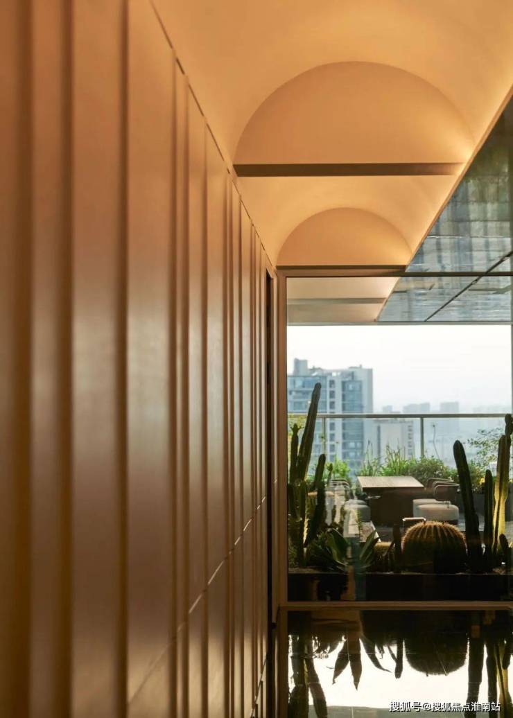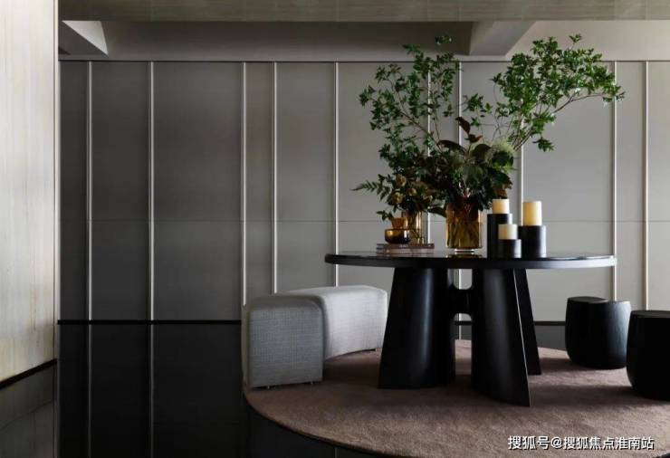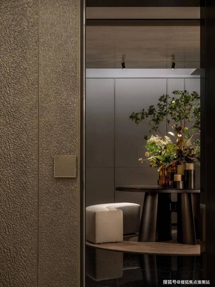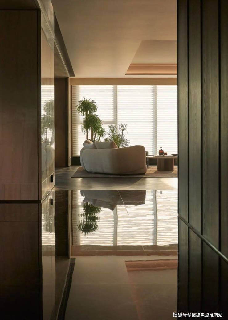 电梯开启,步入玄关的一刻,光、影、植物和圆桌所聚合的东方意向,让人即刻感受到一种纯净,达至心声的宁静。